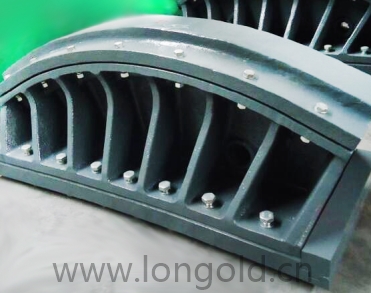 ◎ 主纜和吊索的連接一般采用剛性索夾把主纜篐緊,產生收縮變形時也不致滑動。索夾多采用來兩個鑄鋼半圓構件,當每對半圓索夾安裝在主纜上之后,用高強螺栓對接。可以分為上下兩半,也可分為左右兩半。