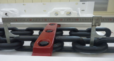 ○測(cè)量方法:必須在鏈條處于張緊狀態(tài)下測(cè)量,但張緊力不得超過(guò)3.1.10中PCC建議的最大預(yù)張緊力。一般測(cè)量4個(gè)環(huán)的段長(zhǎng);至少采集測(cè)量5個(gè)不同段長(zhǎng),并取其平均值。